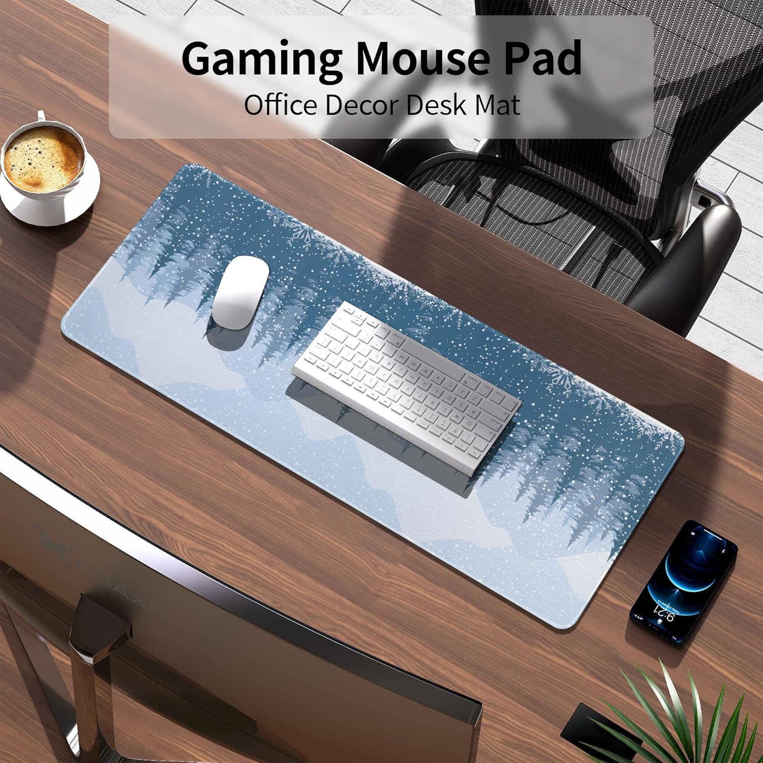 This mouse pad features a snowy forest scene, perfect for Christmas.