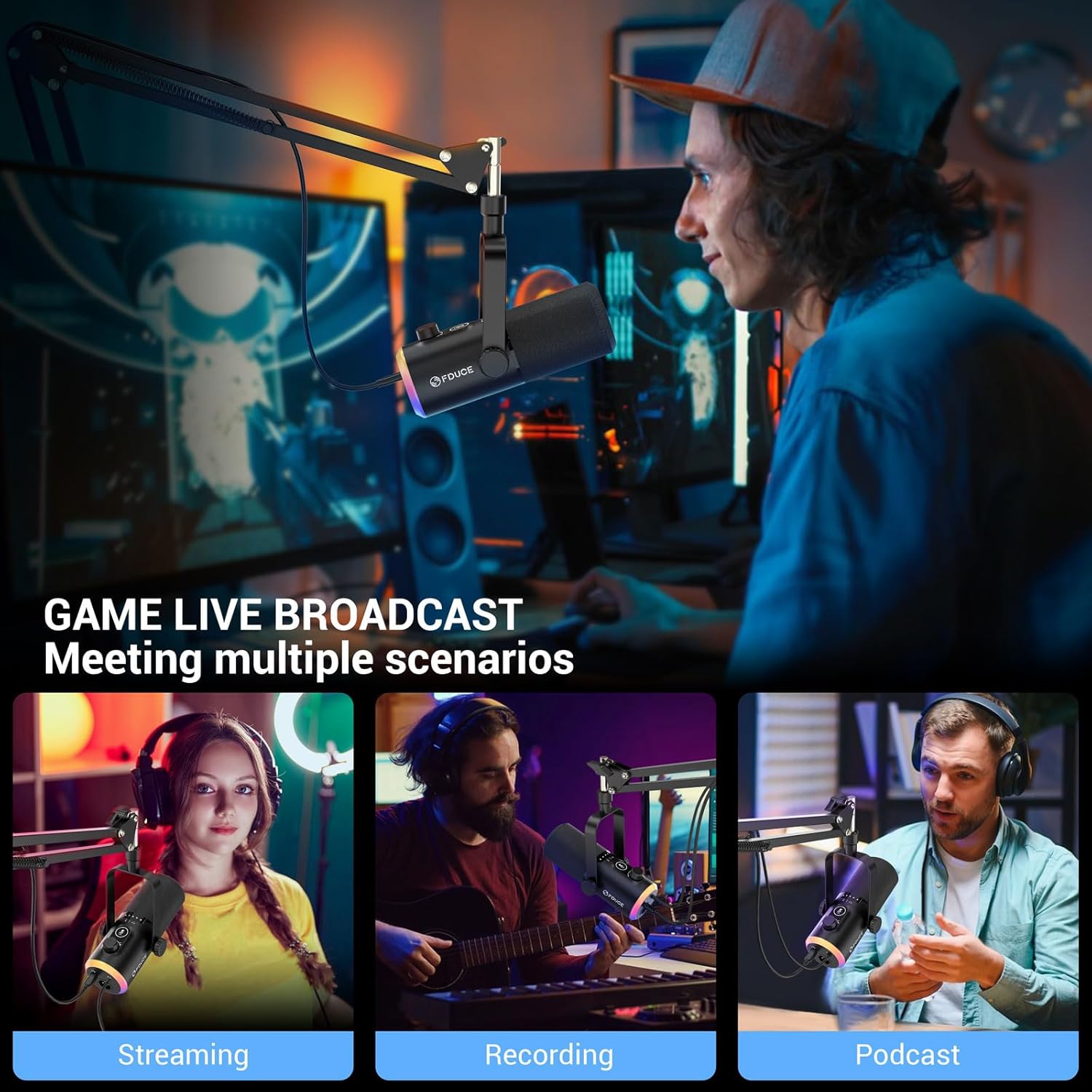 γOne-touch mute, easy to useγThe touch-mute function on the front panel of the USB gaming microphone allows for quick and easy muting to prevent unwanted noise from entering your game, podcast or streaming, helping to avoid any embarrassing streaming audio-related accidents and better protect your privacy. FDUCE D30 USB dynamic microphone easily master every aspect of game voice, streaming and voice recording process. (USB mode only)