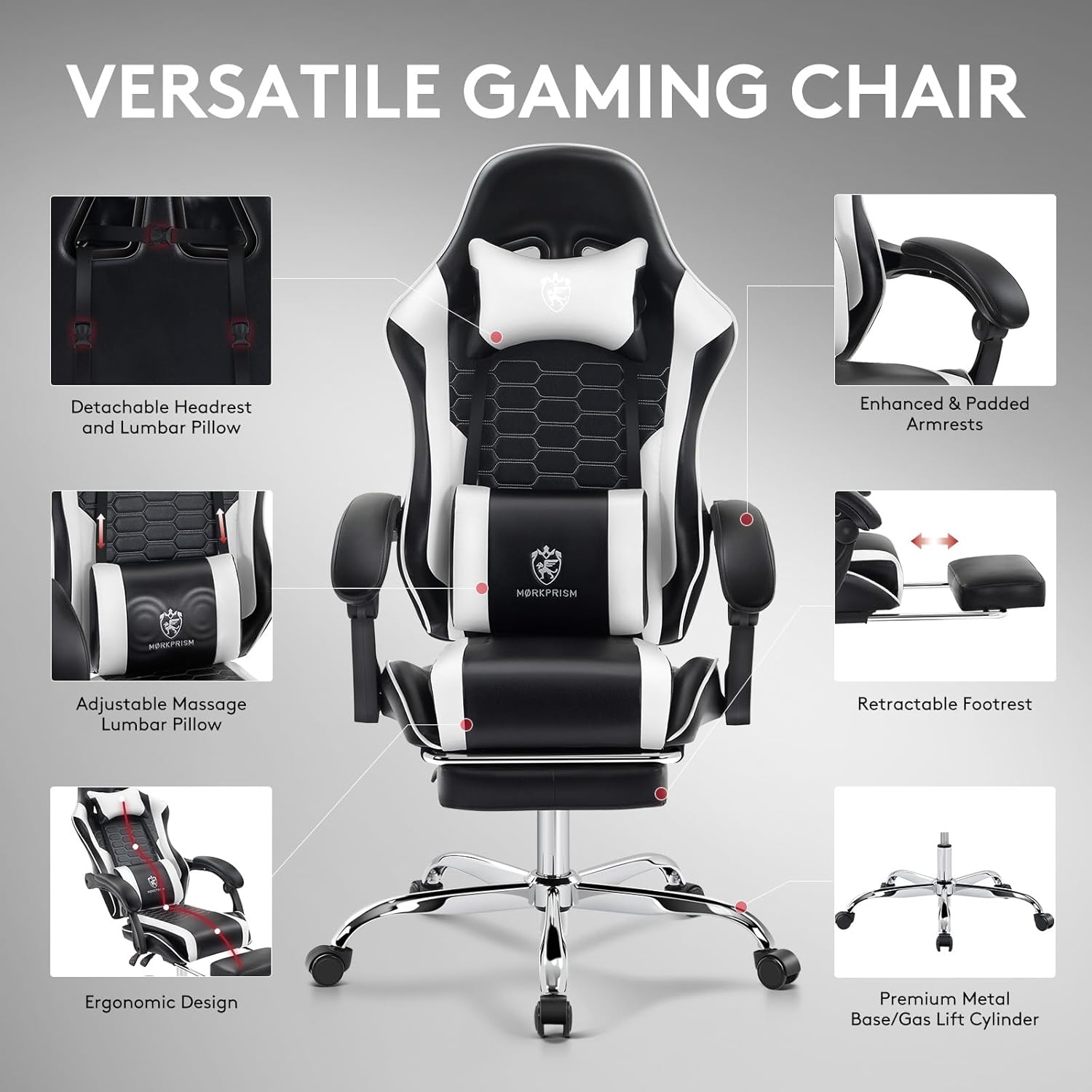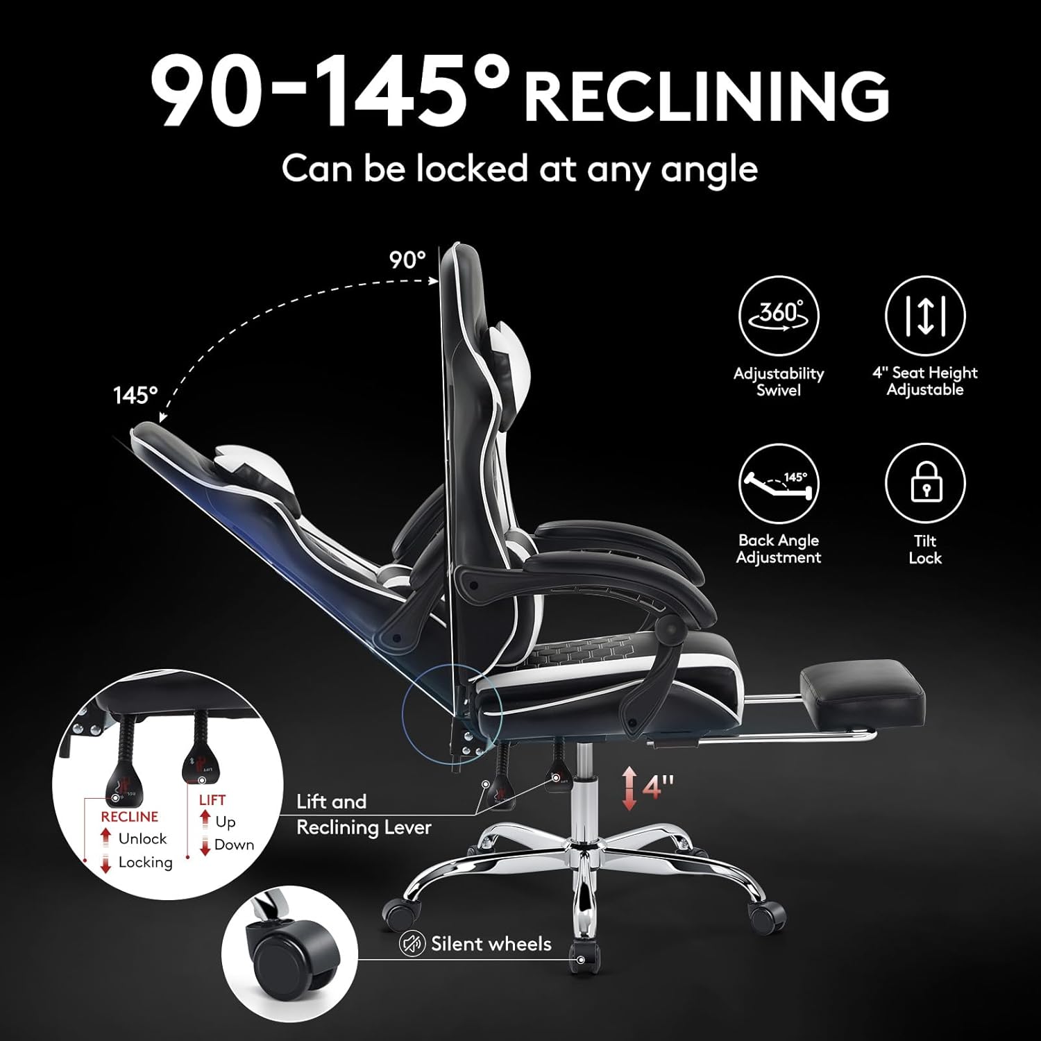 ο»ΏMultifunctional Design: Perfect for both gaming and office use. With a 90Β°-145Β° recline range, retractable footrest (allows for cross-legged sitting), 4-inch height adjustment,360Β° swivel, and smooth-rolling silent wheels, this chair makes it easy to transition between work, gameplay, and rest.