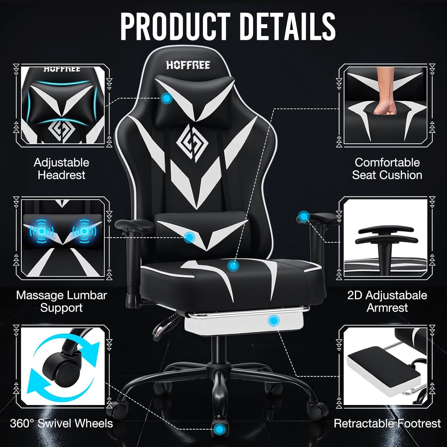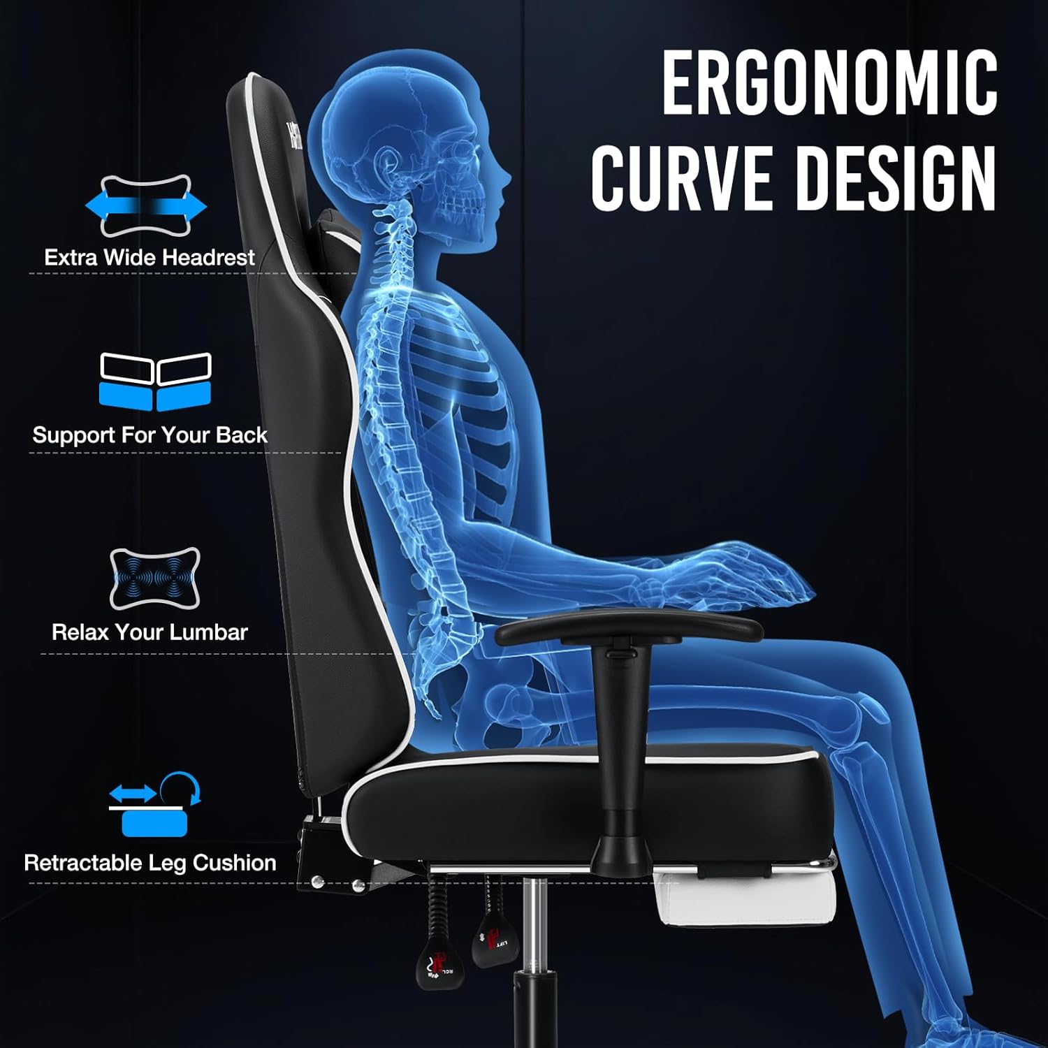 【Safe Computer Chair】 Featuring a Class 3 SGS-certified cylinder and a wide metal base, this computer gaming chair ensures a weight capacity of up to 350 lbs and exceptional stability. You can be confident in enjoying your gaming sessions with reliable support