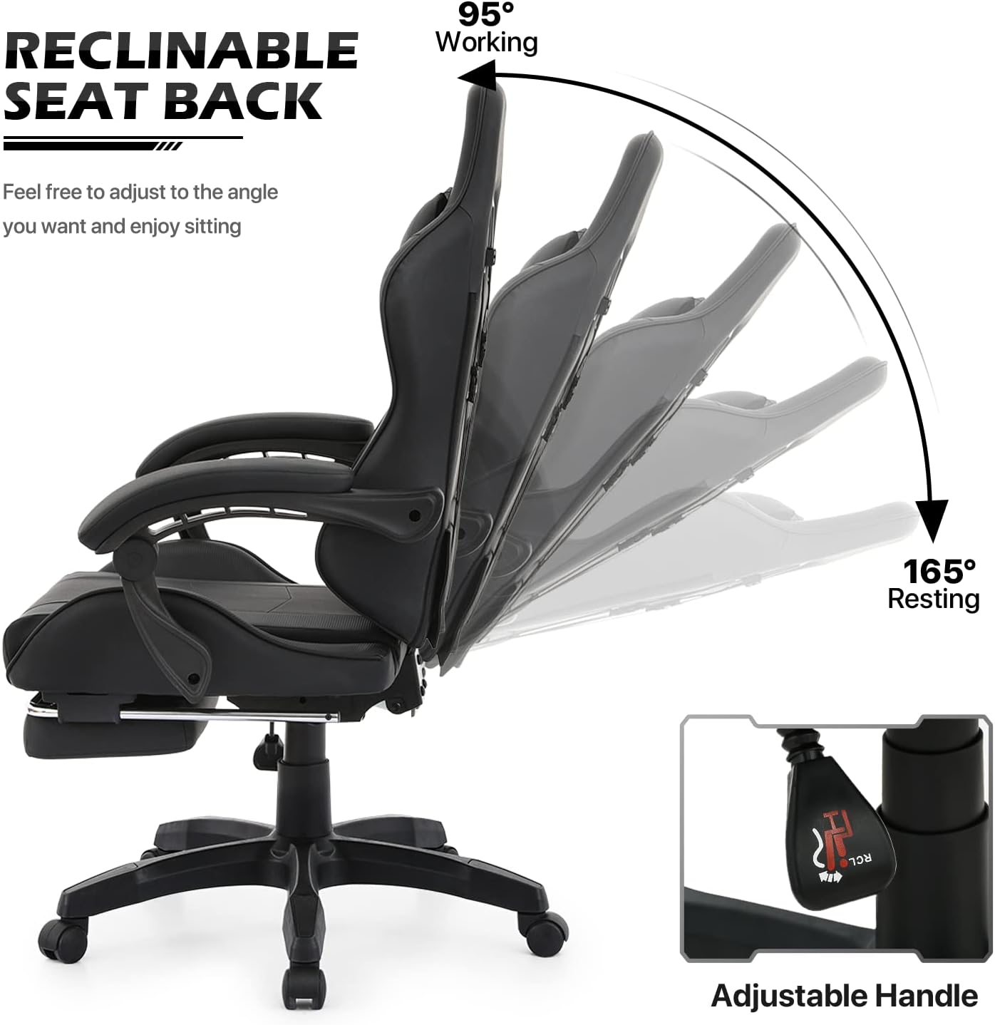 Adjustable Seatback and Footrest - The chair can be laid flat at 165Β° maximum and match up the extending footrest to enjoy comprehensive support for your head, shoulders, back, and legs.
