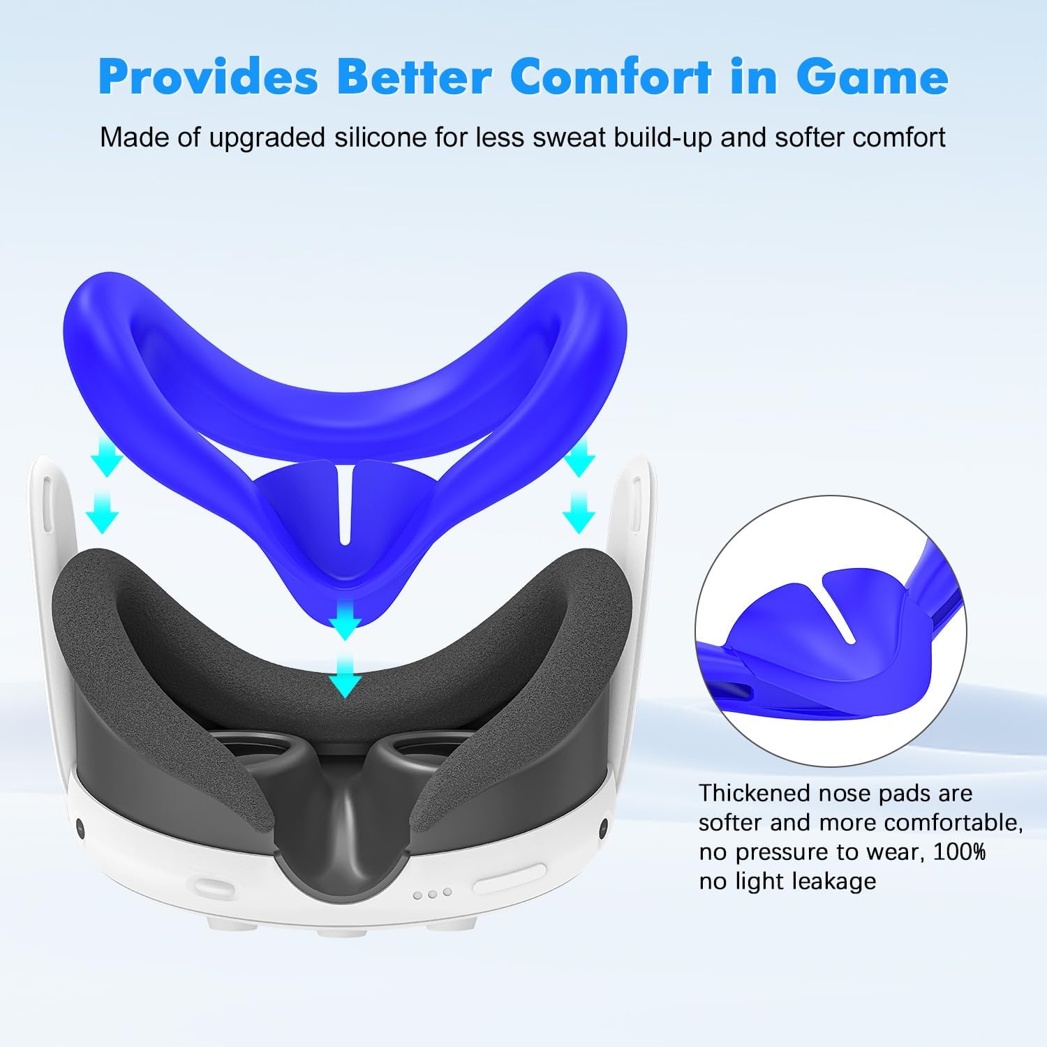 γComfortable Wearing ExperienceγThe silicone material is comfortable to the touch and will not cause any discomfort to your face. When wearing devices for long periods of time, the cover for meta quest 3 reduces the pressure on your face and allows you to enjoy an immersive experience.